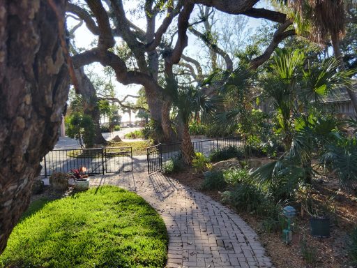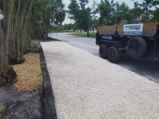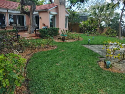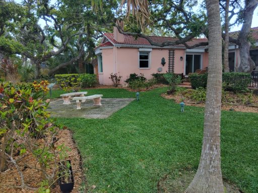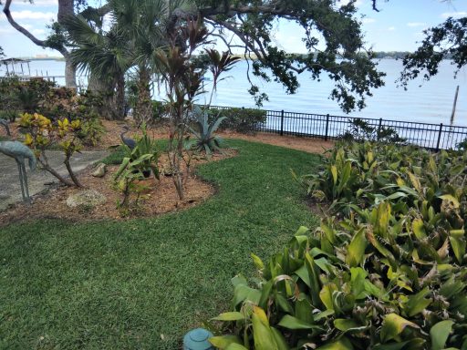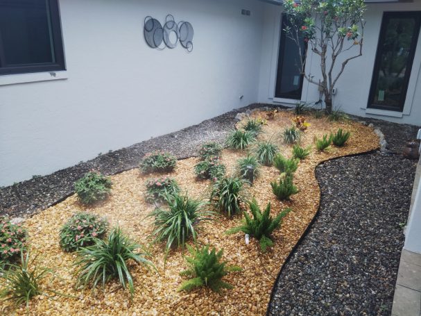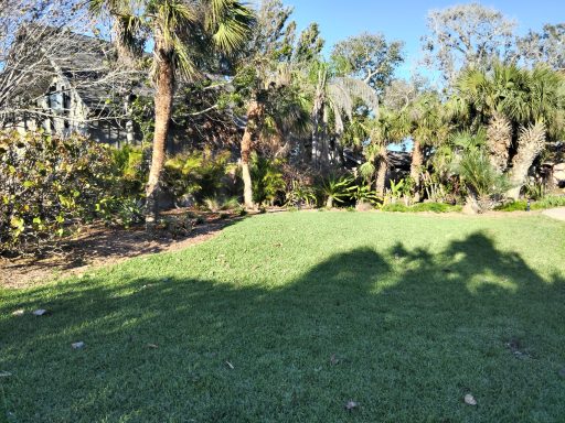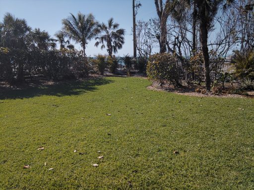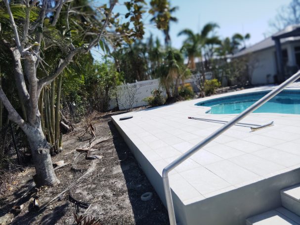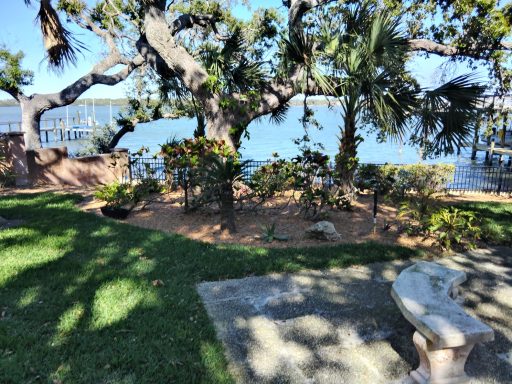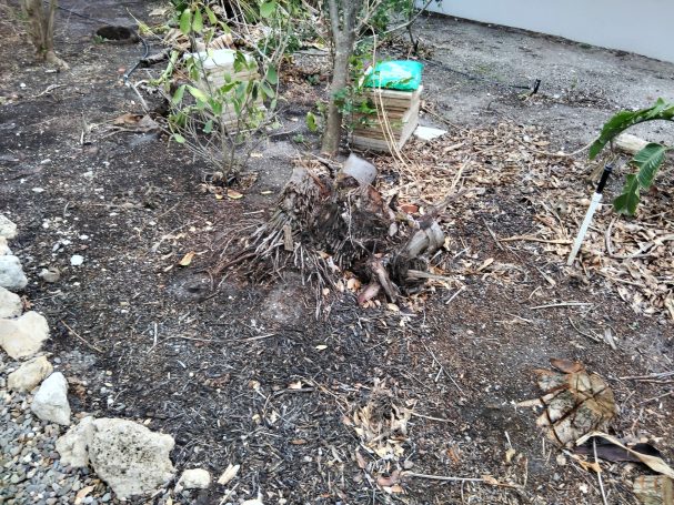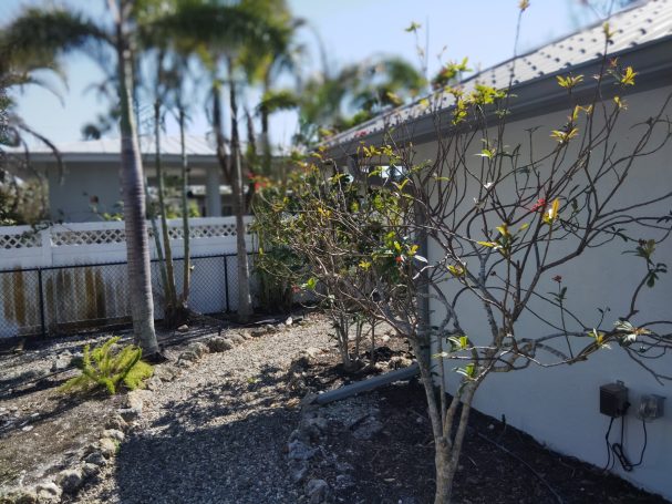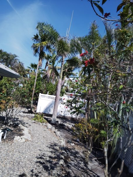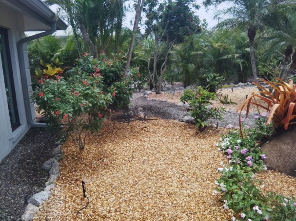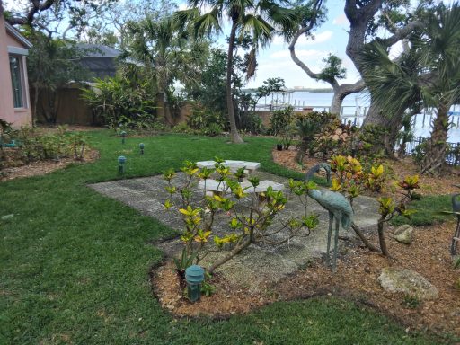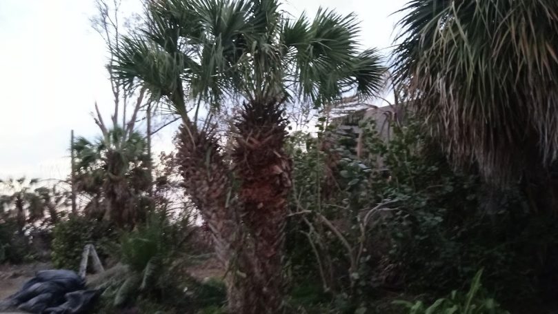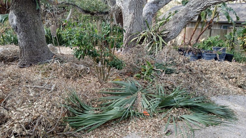 Fema had crews coming by to pick up everything that was piled up along the road but, nobody knew when, In order to get as much of the debris stacked by the road as we could, which was saving us dump runs, we first went through the property getting all the larger debris and then coming back after the debris pick-ups were finished and cleaning the smaller debris and any larger debris that we missed. After the back and the front north side were cleaned, we then graded the shrub beds then installed the areca palms and some plant material. The next step was final grading the areas to get re-sodded. We then installed the mulch and crushed shell where needed. We then laid the sod for the front, then moved to the gulf side to begin the cleanup.