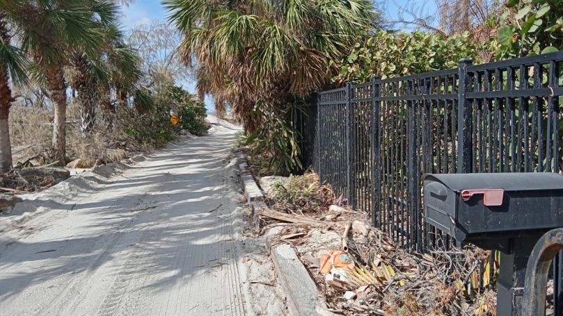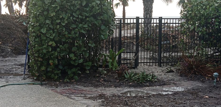 The Storms had moved a large amount of sand from the east property line along the gulf and had placed sand in the northwest corner and the gulf side. We had to transfer the sand from the front of the property to the very back.