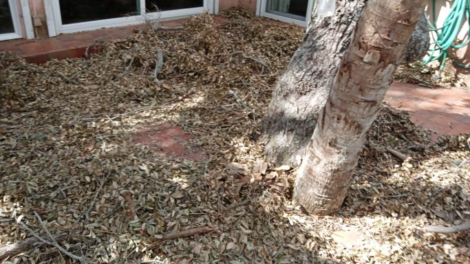 We performed the cleanup and partial re-landscaping, including total shrub cleanup, mulching, trimming trees as needed, and re-sodding.
