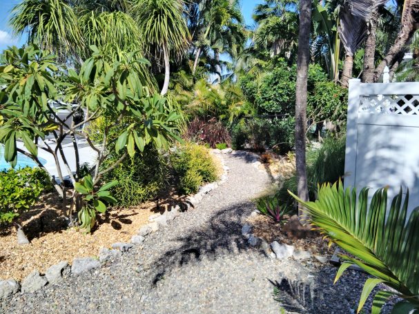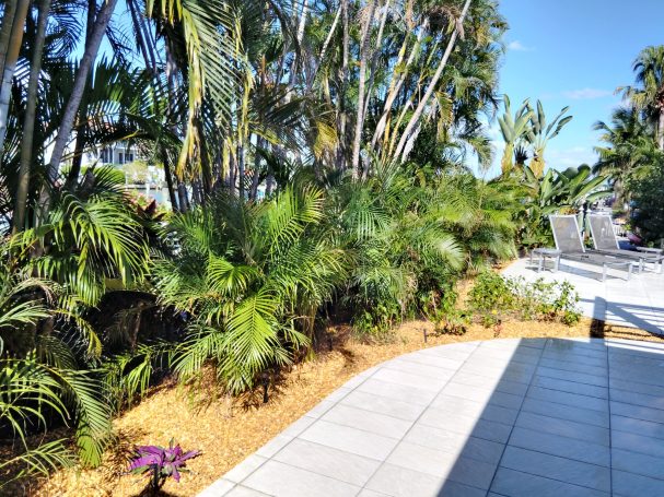We took this opportunity, at the homeowner's request, to convert the mulched paths in the backyard to sod. Due to the amount of shade we installed a new sod which the University of Florida recently designed. It was designed to be "shade-tolerant". I was a little nervous but as you will see, it turned out to look fabulous. I am well impressed with the new St. Augustine Citra blue sod, it looks all around better than Floratam and needs forty percent less sunlight. Furthermore, I very much recommend Citra Blue.