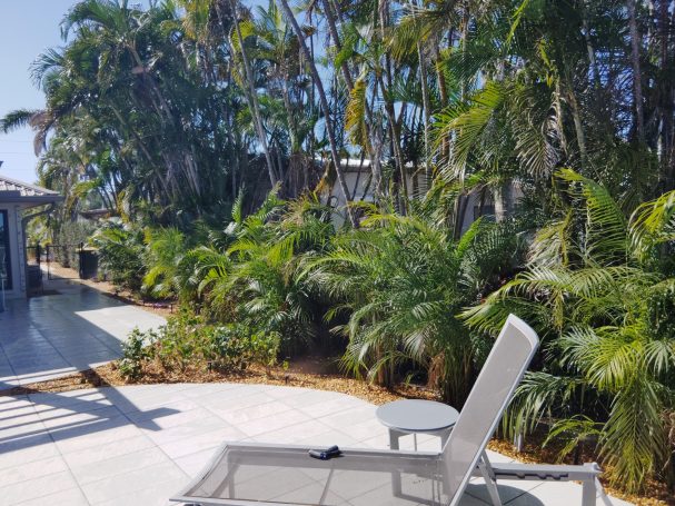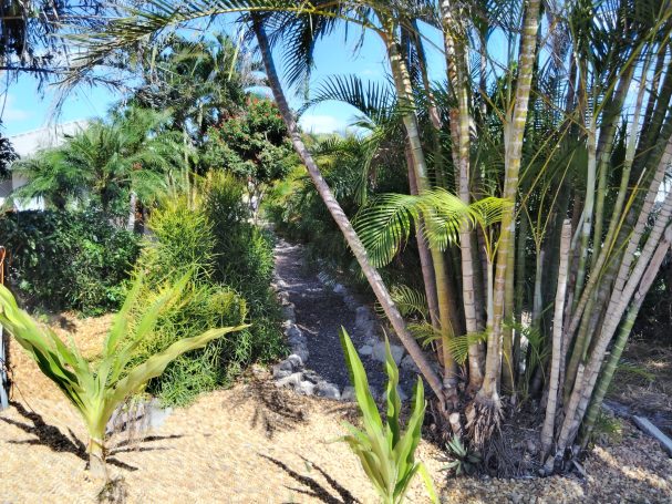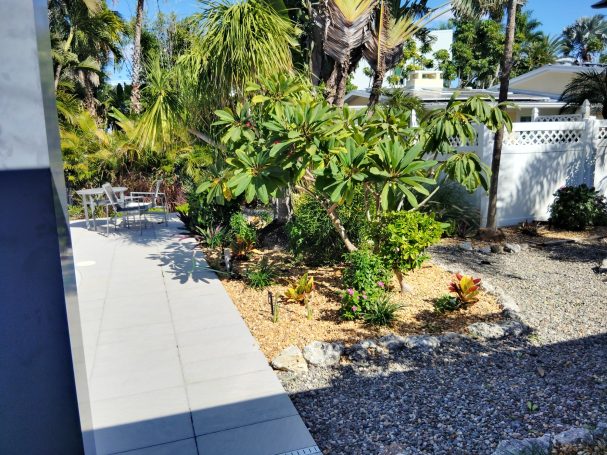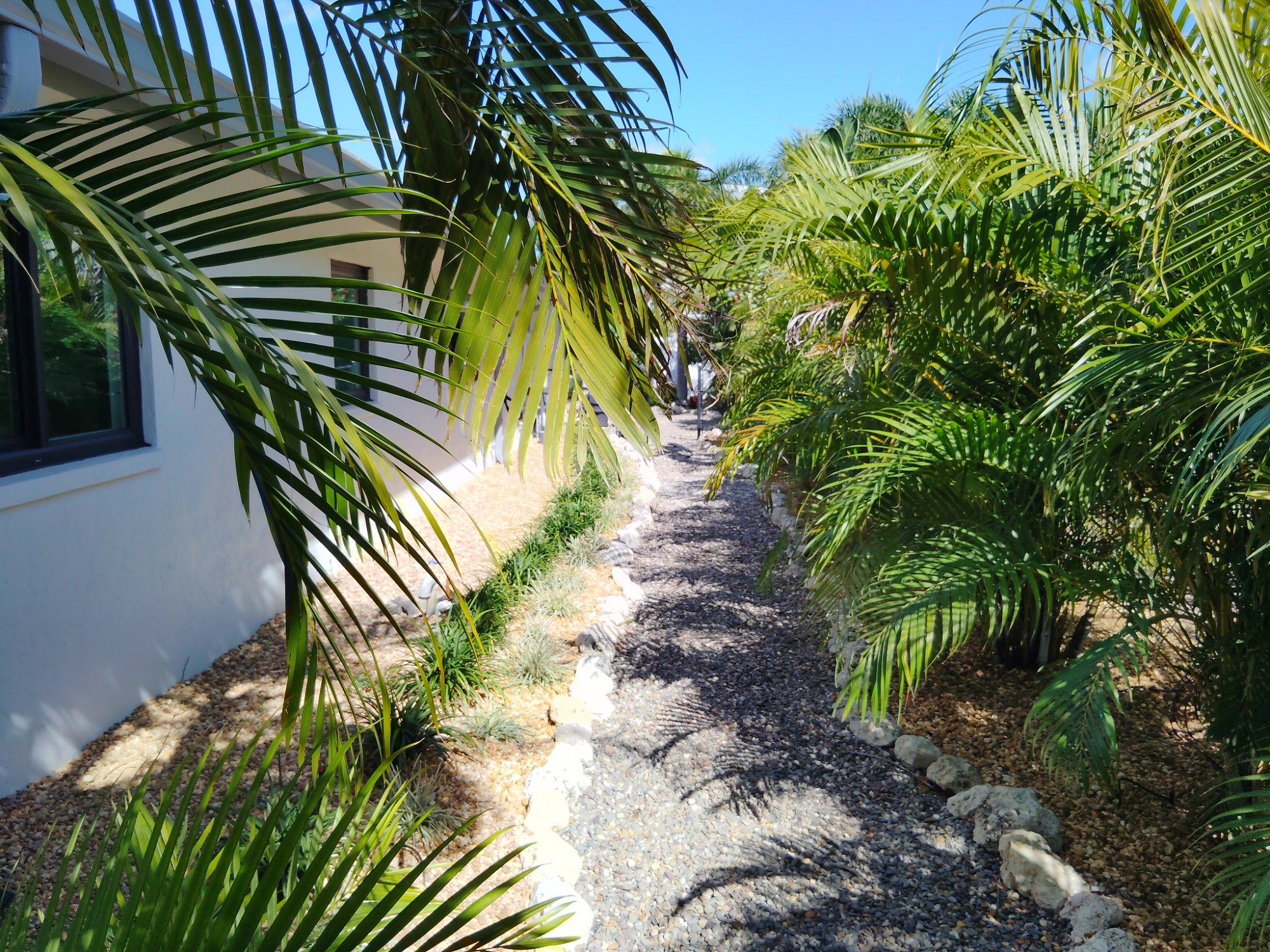 We took this opportunity, at the homeowner's request, to convert the mulched paths in the backyard to sod. Due to the amount of shade we installed a new sod which the University of Florida recently designed. It was designed to be "shade-tolerant". I was a little nervous but as you will see, it turned out to look fabulous. I am well impressed with the new St. Augustine Citra blue sod, it looks all around better than Floratam and needs forty percent less sunlight. Furthermore, I very much recommend Citra Blue.