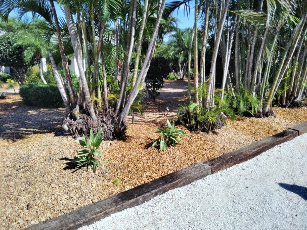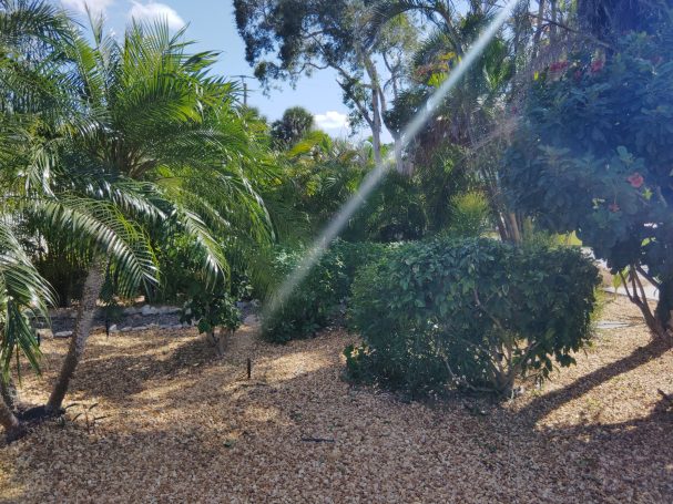 Fema had crews coming by to pick up everything that was piled up along the road but, nobody knew when, In order to get as much of the debris stacked by the road as we could, which was saving us dump runs, we first went through the property getting all the larger debris and then coming back after the debris pick-ups were finished and cleaning the smaller debris and any larger debris that we missed. After the back and the front north side were cleaned, we then graded the shrub beds then installed the areca palms and some plant material. The next step was final grading the areas to get re-sodded. We then installed the mulch and crushed shell where needed. We then laid the sod for the front, then moved to the gulf side to begin the cleanup.